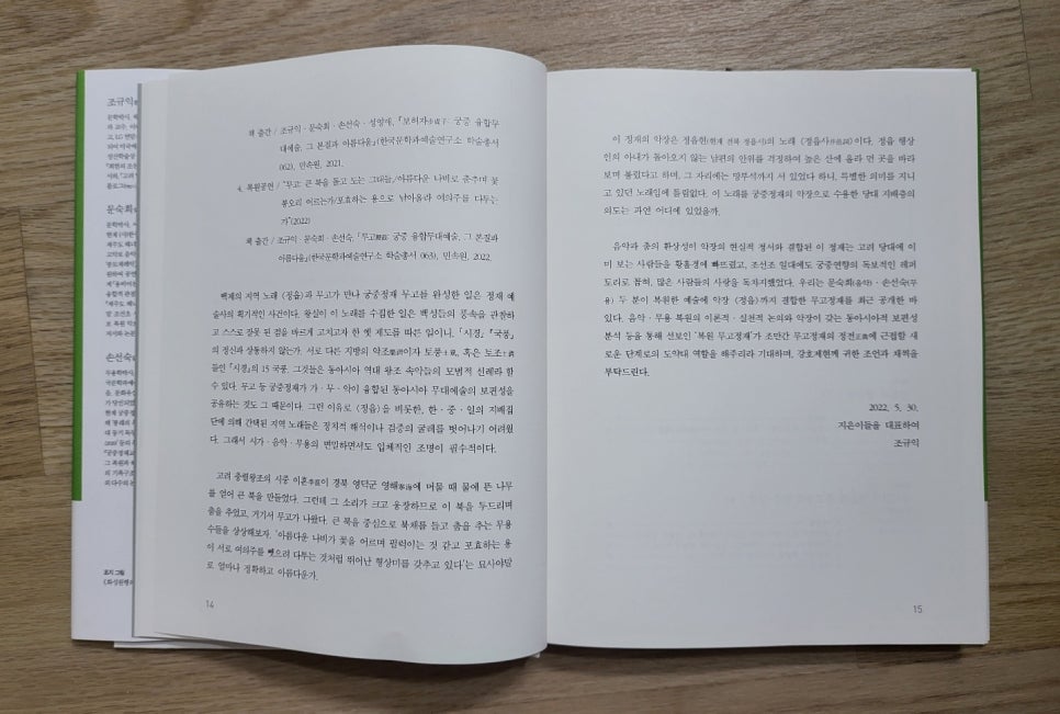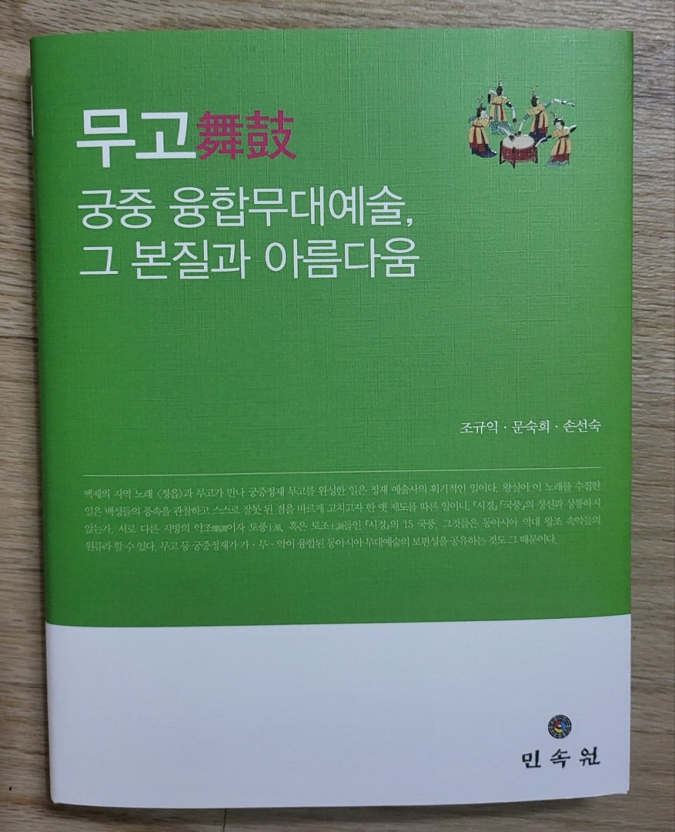 숭실대 #조규익 교수와 #(사)한국문학과예술연구소의 문숙희・손선숙 수석연구원은 최근 #<<무고舞鼓: 궁중 융합무대예술, 그 본질과 아름다움>>을 연구소 학술총서 63으로 민속원에서 펴냈다. 저자들이 2012년에 # ‘가・무・악 융합’이란 아젠다를 내걸었으니, 그럭저럭 올해로 만 10년이 지나는 셈이다. 그 사이에 #<<세종대왕의 봉래의: 그 복원과 해석>>(학술총서 047/ 민속원/2015), #<<동동動動: 궁중 융합무대예술, 그 본질과 아름다움>>(학술총서 058/민속원/2019), #<<보허자步虛子: 궁중 융합무대예술, 그 본질과 아름다움>>(학술총서 062/민속원/2021) 등을 펴냈고, 이 책을 이번에 내놓은 것으로 알려져 있다.