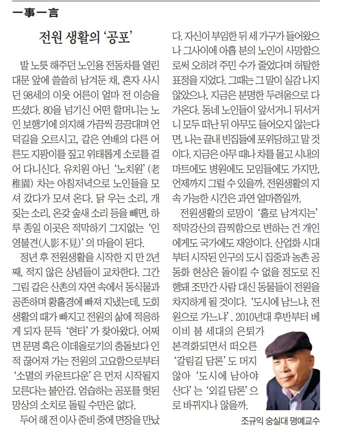<조선일보> 2024년 2월 9일 ‘일사일언’