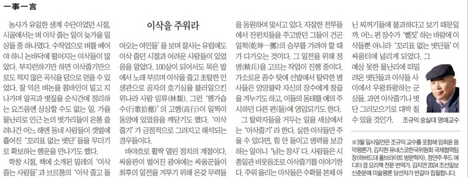 조선일보 2024년 3월 1일 ‘일사일언’