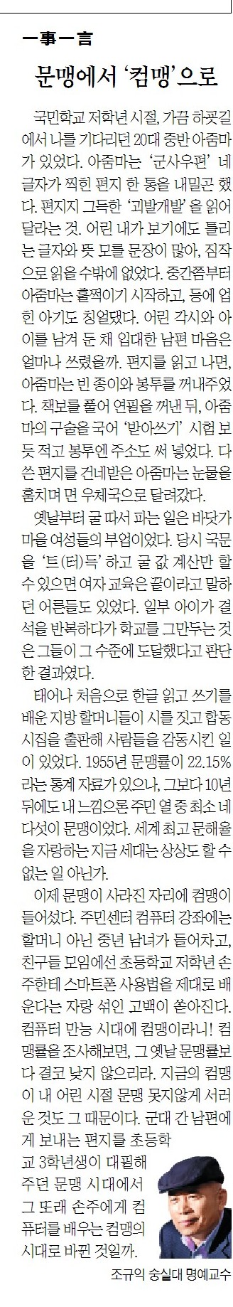 일사일언 문맹에서 컴맹으로