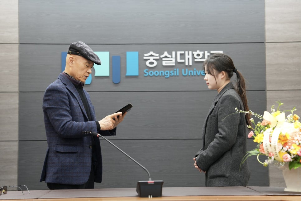 장학패를 받은 반지호(석사 3학기)ㆍ김다원(학부 4학년)에게 거듭 축하하고, 참석하여 축하해준 학생회 임원들, 오충연 학과장, 정영문 교수, 서현욱 조교 등에게 고마움을 전합니다.