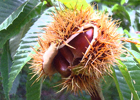 산언덕엔 병든 잎 사이로 밤송이 짝 벌어졌군(病葉山坡栗腹呀)