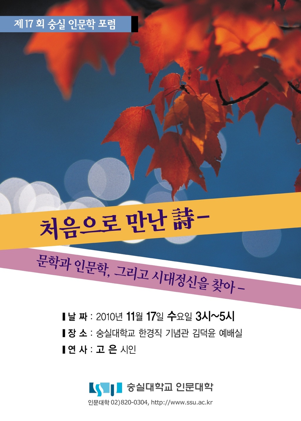 연제 : 처음으로 만난 詩-문학과 인문학, 그리고 시대정신을 찾아-