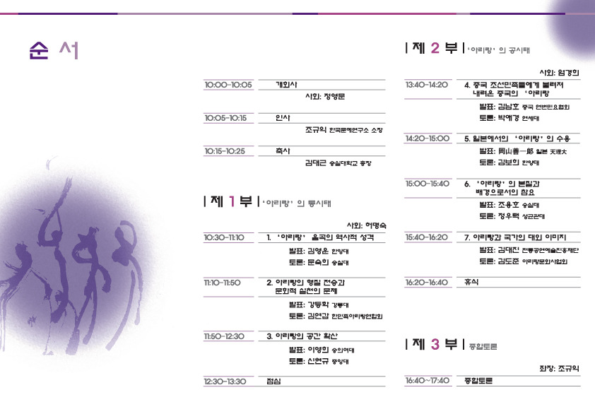 10:30~11:10 아리랑 음곡의 역사적 성격–발표 김영운(한양대)/토론 문숙희(숭실대)