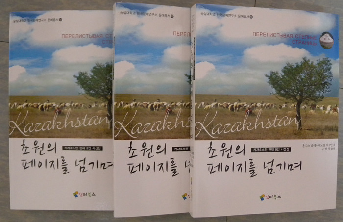 카자흐스탄의 현대 시인 9명의 시작품들을 번역하여 묶은 『초원의 페이지를 넘기며』가 한국문예연구소 문예총서 10으로 출간되었다. 이 책에 실린 시인들은 올자스 술래이메노브[13수], 예브게니 꾸르다꼬브[16수], 발레리 미하일로브[17수], 바흐트잔 까나삐야노브[14수], 나제즈다 체로노바[10수], 알렉산드로 슈미트[16수], 카이라트 박베르게노브[10수], 바흐트 까이르베꼬브[10수], 이 스따니슬라브[16수] 등 카자흐스탄 문단을 대표하는 9명이다.