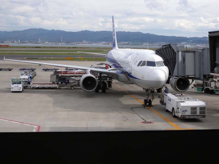 <간사이 공항에서 인천으로 떠날 ANA 기가 이륙 준비를 하고 있다>