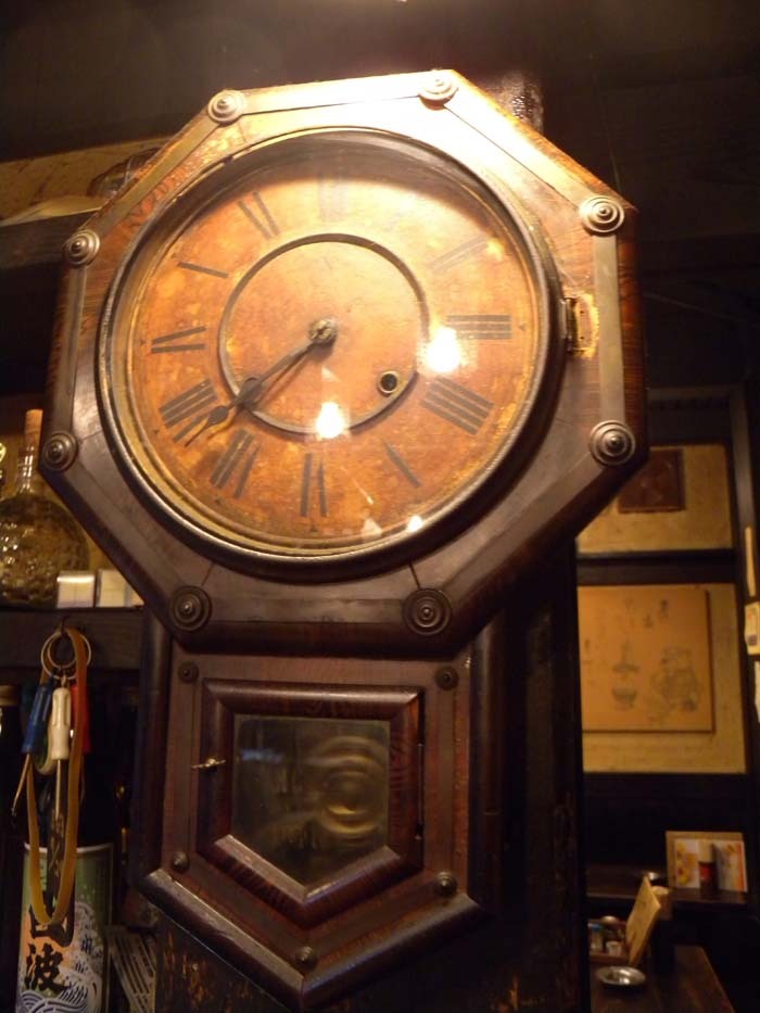 <이자까야 논따로에 걸려 있는 오래 된 시계. 명치시대의 것으로 현재도 살아 있음>