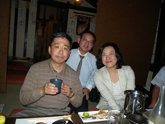 <뒷풀이자리에서 천리대학의 모리야마, 김선미 교수등>