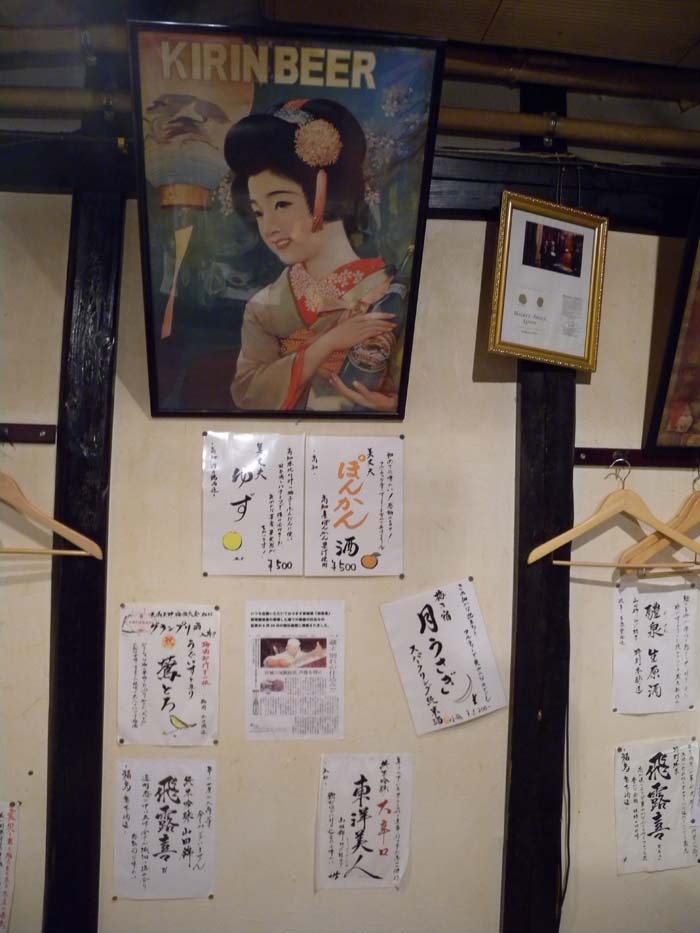 <학회 뒷풀이가 있었던 이자까야의 벽에 붙은 기린맥주 포스터와 술 메뉴들>