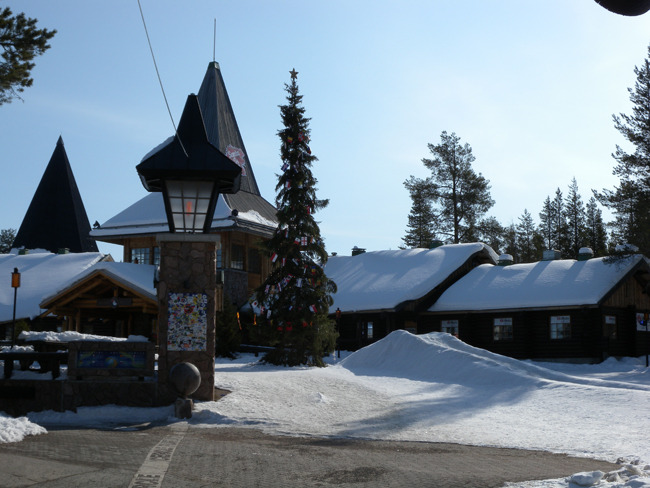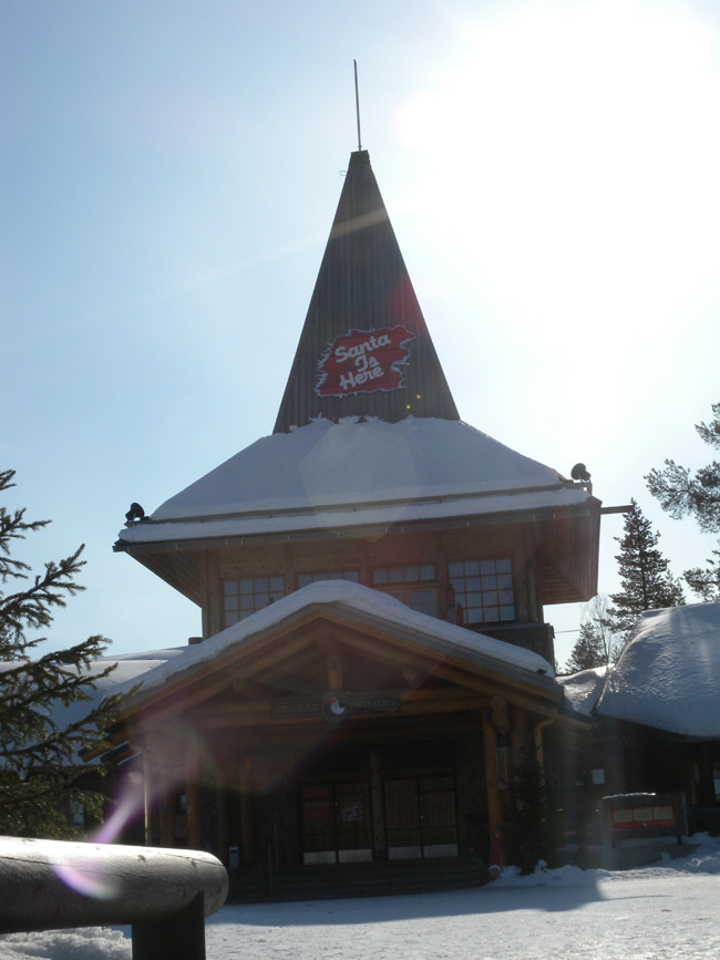 사흘간의 로바니에미 체류를 마무리하기 위해 산타마을에 들렀다. 산타클로스! 꿈과 기대로 아이들을 설레게 하여 어렵던 시절을 무사히 넘기게 했던 환상 속의 존재였다. 산타를 대망(待望)하던 아이들이 자라나 지금 세계 곳곳의 중추로 자리 잡고 있으며, 또 그들의 아이들이 산타를 기다리며 자라고 있다. 누구는 만개(滿開)한 상업정신의 대표 장소로 산타마을을 꼽지만, 마냥 비판만 할 일은 아니다. 찬 공기 넘나드는 전나무와 소나무, 자작나무들이 주변을 둘러 있고, 단 몇 달을 뺀 나머지 기간엔 늘 눈과 얼음에 덮여 있는 이곳. 그나마 산타 할아버지의 인자한 얼굴을 형상하는 것 외에 무슨 희망이 있었을까. 그 환상을 세계 아이들과 공유하며 그들과 함께 성장기의 고뇌들을 넘어 미래에의 꿈과 희망을 갖게 할 수만 있다면, 그것이 상업화된다 한들 무슨 상관있단 말인가. 가게 진열대들을 그득 채우고 있는 산타 관련의 온갖 캐릭터 상품들, 아이들의 상상력을 자극할만한 각종 동물 형상들과 의상들, 산타에게 소원을 빌기 위해 각국에서 보내온 크리스마스 카드들[그런데, 우리나라에서 보내온 카드들이 많았다!]. 무엇보다 크리스마스 카드를 미리 써서 보낼 수 있다는 우체국 서비스가 재미있었다. 이곳을 여행하는 사람이 가족이나 친지들에게 보낼 카드를 미리 써서 부치면 산타클로스 우체국 마크를 찍어 크리스마스 즈음에 전달해준다는 것이었다. 재미있는 발상들에 잠시 세상의 번뇌를 잊어보는 순간이었다.