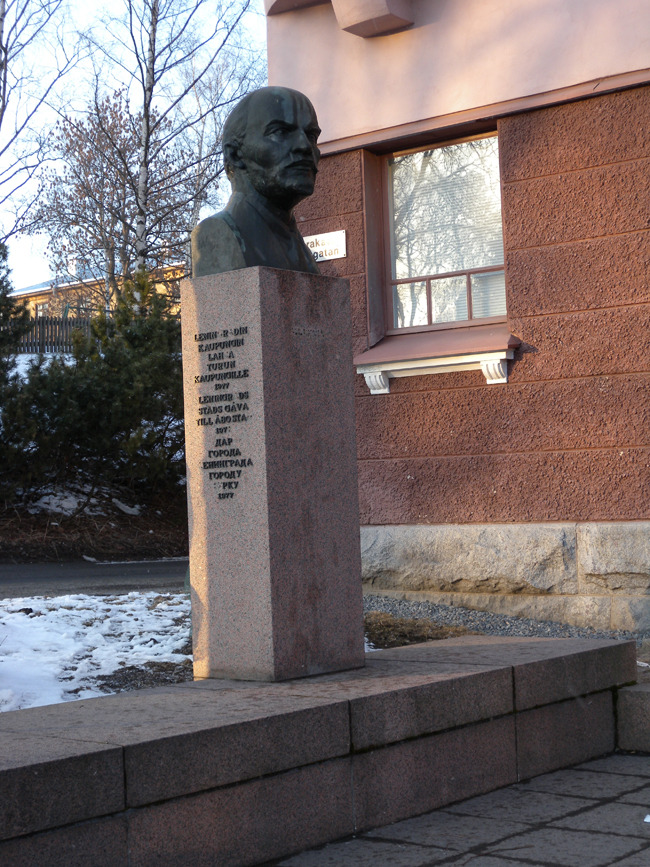 도서관을 나와 ‘손바닥 만한’ 뚜르꾸 시가지를 체험하는 도중 언덕 위에 우뚝 선 ‘Art Museum’을 만났다. 문이 잠겨있어 들어갈 수는 없었으나, 건물의 모습은 물론 시가지를 내려다보고 서 있는 위치가 범상치 않았다. 뮤지엄이 서 있는 언덕 아래로 시원하게 뚫린 대로(大路)가 그대로 도시를 관통하여 아우라 강을 자르며 맞은편 언덕으로 이어지는 형국이었다. 그런데 더욱 놀란 건 그 뮤지엄 바로 밑에 레닌의 흉상이 서 있는 일이었다. 아, 그곳이 바로 10월 혁명 이전 몇 차례의 거사에 실패하여 짜르에게 쫓긴 레닌이 망명생활을 하던 곳 이었다! 이상한 열기가 몸에 전해진다 싶었는데, 혁명가의 열정이 아직도 살아남아 벌떡거리는 박동을 느끼게 하는 곳이었다. 혁명의 와중에 유일하게 적군이 백군에게 패한 곳이 핀란드였는데, 레닌이 바로 그곳에 망명해 있었다니! 놀라운 일일 수밖에 없어, 귀국하면 그 역사를 다시 들춰 봐야겠다고 마음을 먹는다. 핀란드와 가까운 곳에 레닌그라드[현재 쌩뜨 뻬쩨르부르그]가 있고, 도시 전체에서 미미하나마 러시아나 동유럽의 기풍을 감지한 내 첫 느낌이 그 사실과 어떤 연관성을 갖고 있을지도 모른다는 섣부른 생각이 드는 것은 왜일까?