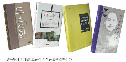 최근 『근포 조순규 시조 전집』, 『소년소설육인집』(도서출판 경진 刊)을 발간한 박태일 경남대 교수(국어국문학과), 『CIS 지역 고려인 사회-소인예술단과 전문예술단의 한글문학』(태학사 刊)를 상재한 조규익 숭실대 교수(국어국문학과), 『단재 신채호 시전집』(기별미디어 刊)를 내놓은 박정규 전 청주대 교수(신문방송학과)가 그 주인공이다. 자신의 주 전공 분야를 가로질러 새로운 분야에 발을 딛는 이들의 작업은 어떤 의미일까. 지난 3, 5월에 『근포 조순규 시조 전집』, 『소년소설육인집』을 발간한 박태일 교수의 작업은 지역문학총서 시리즈 15, 16권이다. 말하자면 지역문학연구의 일환으로 시작한 셈이다.