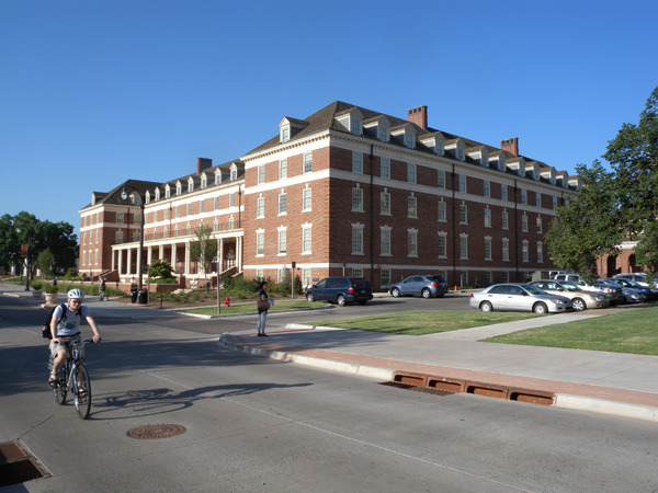 1890년 12월 25일 ‘오클라호마 지역 농업기술대학’으로 출범했기 때문일까. 한낮 40도에 육박하는 햇살 아래 걷기 어려울 만큼 OSU의 규모는 크고도 넓다. 어떤 지인의 말대로 한국에서 가장 넓은 캠퍼스를 자랑하는 K대학의 80배에 달한다니, 대학 자체가 말 그대로 하나의 타운이었다. 미국에서 들러 본 몇몇 대학들과 비교해도 월등하다. 파스텔 톤의 지붕에 붉은 벽돌로 지어진 건물들이 질서 있게 늘어서 있고, 건물들 사이사이로 파란 잔디와 무성한 교목(喬木)들이 열기를 식혀주고 있었다. 그 사이로 오렌지색 티셔츠를 간편하게 걸친 학생들이 삼삼오오 지나고 있었다. 대체로 ‘파스텔톤-레드-옐로우-그린’으로 어우러진 학교 전체의 색상은 파란 하늘과 아름다운 대비를 이루고 있었다.