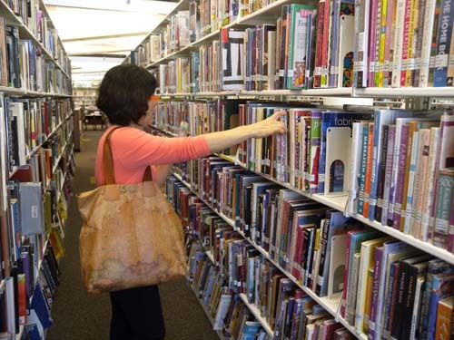 Stillwater Public City Library에서 책을 고르고 있는 Melania