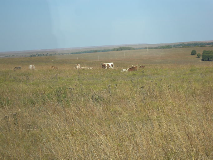 8시에 버스 두 대에 분승한 우리들은 2시간여를 달려 드디어 광활한 초원으로 들어섰다. 작은 키, 중간키, 큰 키의 각종 풀들이 끝이 보이지 않는 대지에 깔려 있고, 저 멀리 검고 흰 소떼가 대지에 주둥이들을 박은 채 풀 뜯기에 여념이 없었다. 간간이 관목지대가 보이지 않는 것은 아니로되, 온통 풀밭이었다. 미국인들이 ‘Tall Grass Prairie’[이하 ‘TGP’로 약칭]라고 부르는 자연 초지(草地)였다. 풀만 있는 게 아니었다. 드문드문 원유 채굴기들이 끄덕거리며 서 있고, 땅 속에서 퍼낸 원유와 가스를 저장하는 탱크들도 보였다. 말하자면 땅 위에는 달디 단 젖과 고기를 만드는 영양 만점의 풀이 그득하고 땅 밑에는 인류문명을 지탱하는 또 다른 젖인 원유가 고여 있으니, 이 나라는 대체 어찌하여 이런 복을 타고 났단 말인가.