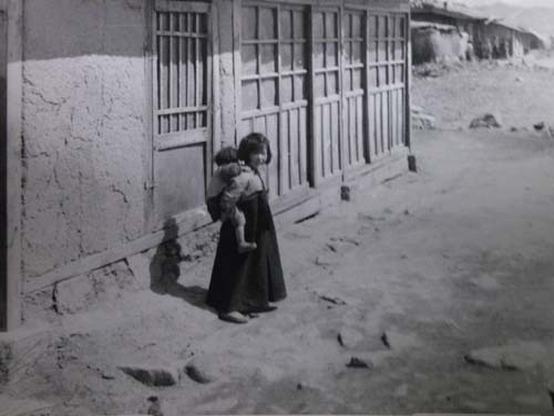 여섯 살 난 여자애가 동생을 업고 있는 모습에 사진사의 시선이 꽂히는 순간이다. 한 집에 일곱 여덟씩의 아이들이 북적대던 우리 어린 시절, 젖먹이 아이들을 업어 키우는 일이야 당연히 형이나 누나들의 몫이 아니었던가. 그런 일을 미국인으로서는 상상도 할 수 없었을 것이다. 사진의 앵글이나 초점과 메모의 내용을 결부시키면, 사진사의 단순한 호기심보다 따스한 동정과 연민의 정이 느껴지지 않는가.