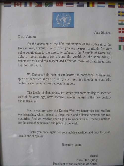 김대중 전 대통령이 보낸 감사의 편지