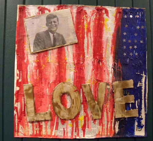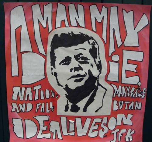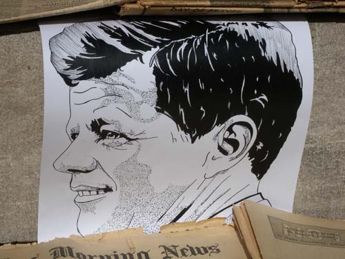 시민이 그려 박물관 계단에 붙여놓은 케네디 대통령의 초상화