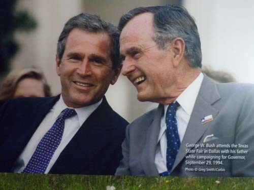 1994년 9월 12일 달라스의 Texas State Fair에서 아버지 부시와 함께.