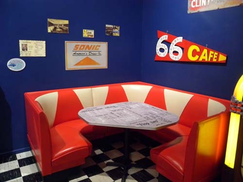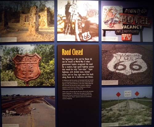 이런 대규모의 토목공사를 통해 세계 대공황으로 무너진 산업의 기반을 일으켜 세우려 한 것은 당연한 일이었겠지요. 길이란 필연적으로 여행의 욕망을 부추기는 공간이고, 여행은 어쨌든 소비 행위라 할 수밖에 없지요. 그래서 2차 세계대전 같은 비상시에 소비행위는 억제될 수밖에 없었고, 그 결과 66번 도로의 쇠락은 필연적인 결과였겠지요. 전쟁 이후 산업화 시대에 들어오면서 새로운 길의 수요에 따라 66번 도로 대신 넓고 빠른 하이웨이들이 건설되어 효율성을 추구하게 됨으로써 그 길은 다시 쇠락의 길을 걸었지요. 그러나 다시 시대가 바뀌어 삶의 질과 내면을 추구하는 시대로 접어들면서 버려졌던 66번 도로는 부활하게 된 것이지요. 그렇게 66번 도로의 ‘탄생-성장-쇠락-부활’을 일목요연하게 보여주는 컨셉으로 짜여 있는 곳이 바로 이 박물관이었어요.