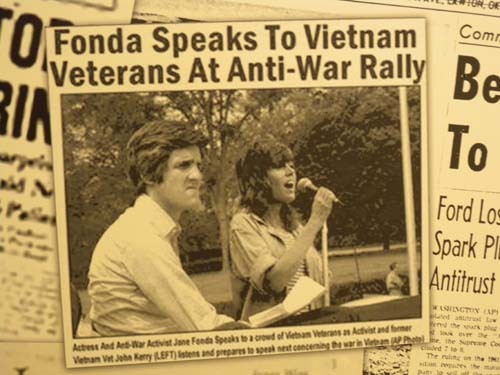 베트남전 당시 반전의 목소리를 높이던 제인 폰다와 신인 정치인 존 케리(현재 미 국무장관)