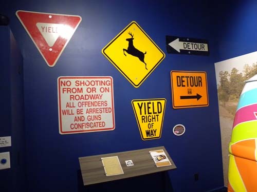 당시 66번 도로에 설치되어 있던 각종 교통 표지판 및 경고표시들