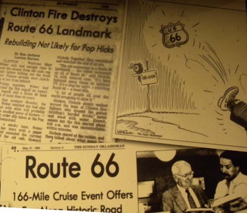어쨌든 클린턴 시티는 66번 도로와 뗄 수 없는 관계를 유지해 왔고, 그 덕분에 많은 이점을 얻었다고 할 수 있소. 66번 도로 가의 다른 도시들과 마찬가지로 클린턴도 여행자들을 상대로 하는 업종이 성황을 이루고 있었지요. 예컨대, 각종 레스토랑, 까페, 모텔, 주유소, 자동차 정비소 등이 그런 것들이지요. 그 업소들 가운데 하나만 예를 든다면, ‘팝 힉스 레스토랑(Pop Hicks Restaurant)’ 같은 경우는 66번 도로에서 가장 오랫동안 운영되던 식당이었다지요. 말하자면 ‘길에서 돈이 생기는’ 환상적인 체험을 적어도 66번 도로가 거쳐 가는 도시민들은 절감하게 된 것이지요. 사실 이 도로가 쇠락의 길을 걷다가 다시 부활한 것도 이 길과 이해를 함께 한 사람들의 추억 덕분이 아닐까 생각하고 있어요. 말하자면 ‘옛날의 영광이여, 다시 한 번!’이란 ‘인간 욕망’의 구현이라고나 할까요?