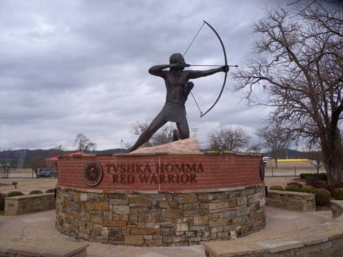 촉토 네이션 뮤지엄 앞에 서 있는 ‘붉은 전사[Red Warrior]’ 상