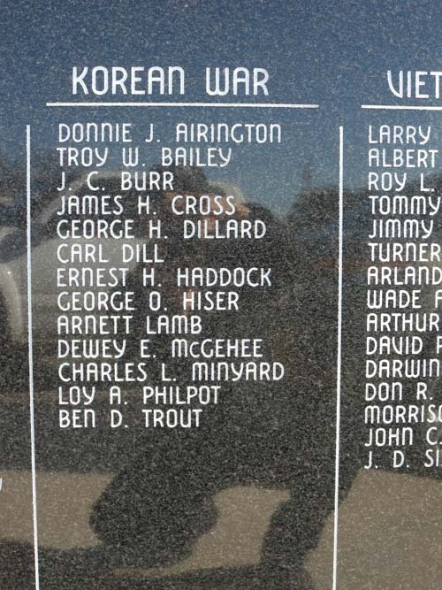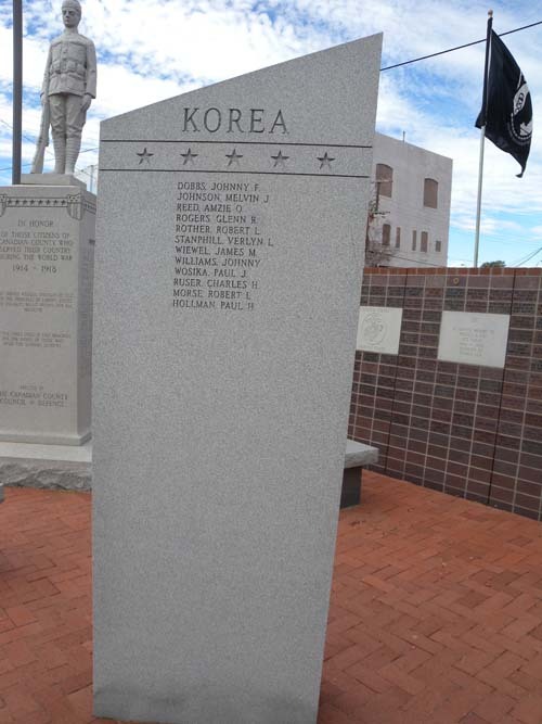 엘 르노 시티 다운타운의 전몰용사 추모공원 한 복판. ‘Korea’라는 글자들이 선명한 비석 중심에 ‘Dobbs, Johnny F./Johnson, Melvin J./Reed, Amzie O./Rogers, Glenn R./Rother, Robert L./Stanphill, Verlyn L./Wiewel, James M./Williams, Johnny/Wosika, Paul J./Ruser, Charles H./Morse, Robert L./Hollman, Paul H.’ 등 한국에서 전사한 미국의 젊은이들의 빛나는 이름들이 올라 있었다.