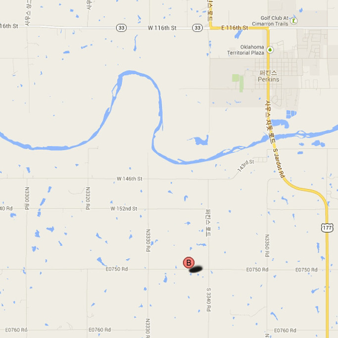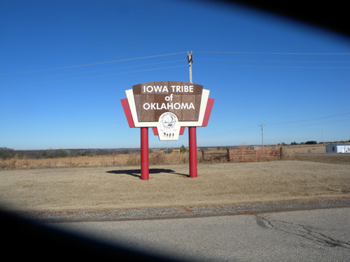 2013년 12월 16일 아침 10시쯤 집을 나섰다. 첫 목표지는 치카샤 인디언 네이션이 있는 아다(Ada)였고, 거기로 가기 위해 타는 길이 177번 하이웨이였다. 그 177번길의 스틸워터 시내 구간은 퍼킨스 로드(Perkins Road)였고, 묘하게도 그 길은 퍼킨스 시티(Perkins City)로 연결되었다. 즉 퍼킨스 로드를 따라 스틸워터에서 벗어나 30분쯤 가니 퍼킨스 시티가 나오고 그로부터 남쪽으로 계속 4마일쯤 달리다가 눈에 번쩍 뜨이는 표지판을 만나게 된 것이었다. “Iowa Tribe of Oklahoma”란 글자들 밑에 이상한 모양의 문장(紋章)이 새겨진 앙증스러운 표지판이었다.