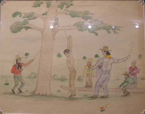 매 나무[Wheeping Tree)에 죄인을 매달고 회초리형을 가하고 있는 세미놀 족 관리들