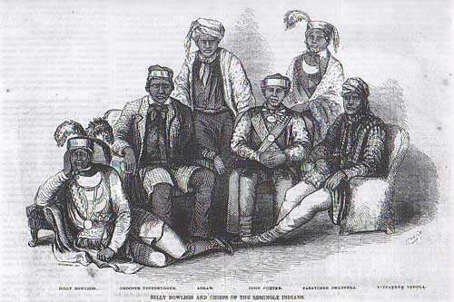 추장을 중심으로 앉아있는 세미놀 족 남자들
