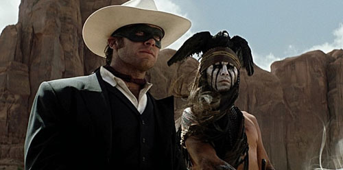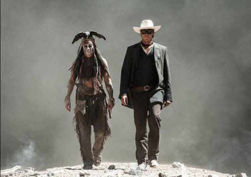 영화<론 레인저>의 한 장면. 왼쪽이 쟈니 뎁(Johnny Depp), 오른쪽이 아미 해머(Armie Hammer)