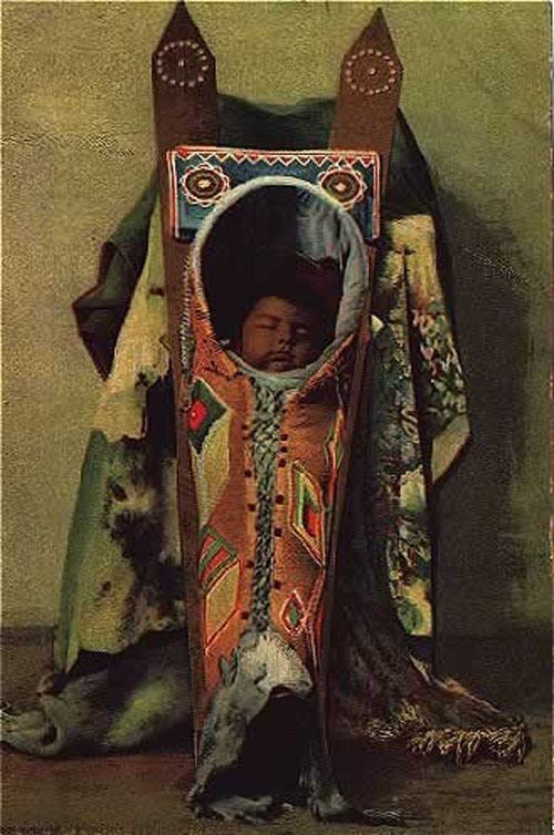 크레이들보드에서 잠들어 있는 카이오와 아기. 바네사의 작품.