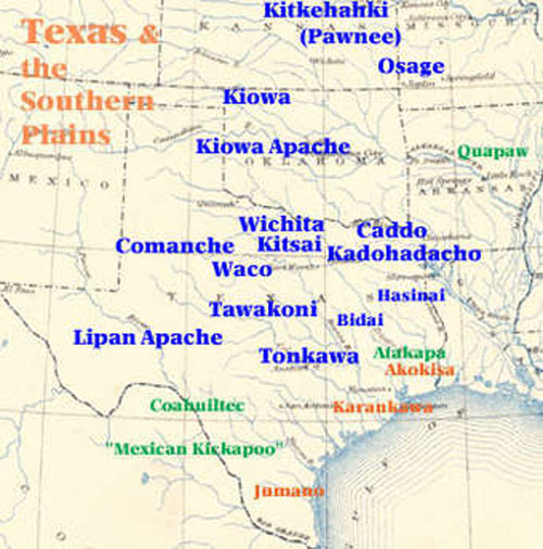 아나다르코에서 확인한 오클라호마 주 내 인디언 부족들의 분포상