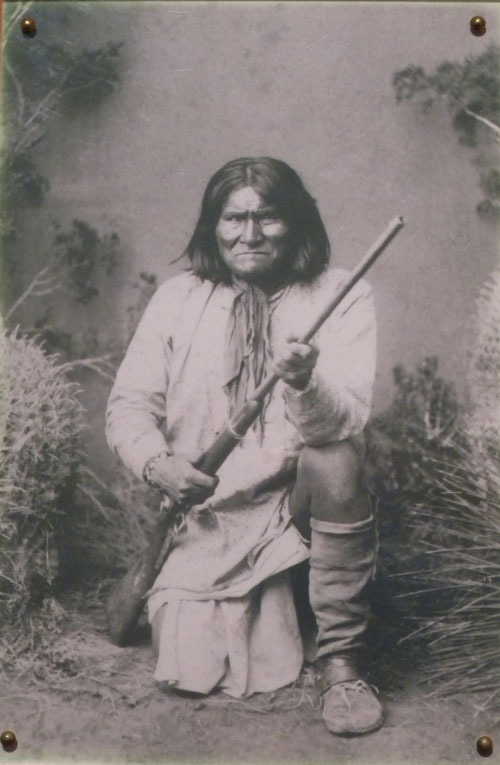 아파치족의 걸출한 지도자 제로니모. 1909년 2월 17일 포트실 감옥에서 80세를 일기로 사망했음.