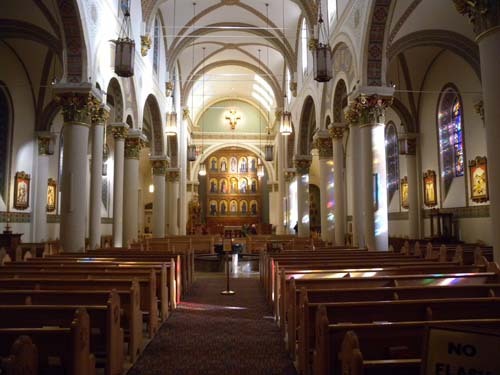 그 다음에 방문한 곳이 바로 이 지역 종교적 성향의 핵심인 ‘과달루페 성소[Santuario Guadalupe]’로서, 산타페 다운타운에서 가장 아름다운 교회로 꼽히는 곳이었다. 주 제단 뒤쪽의 벽장식은 모두 멕시코시티에서 가져온 것들이며, 내부 장식 모두는 멕시코 바로크 풍의 소박한 모습을 하고 있었다. 1531년 멕시코 아즈텍 종족 출신의 후안 데 디에고(Juan de Diego)에게 현신하여 성당을 지을 것을 명령한, 갈색 피부를 가진 원주민 형상의 성모가 바로 ‘과달루페 성모’다.