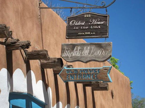 앞의 글에서 빠뜨리긴 했지만, 올디스트 하우스(Oldest House)도 그냥 지나칠 수 없는 명소였고, 아침에 찾아간 앤틱 선물가게 또한 안팎이 예술로 뒤덮인 아름다움의 덩어리였다. 올디스트 하우스는 말 그대로 이 지역 뿐 아니라 미국에서 가장 오래 된 집으로 추정되는 건물이었다. 1598년 후안 데 오네이트(Juan de Onate)의 인도 아래 첫 스페인 정착자들과 함께 멕시코로부터 틀락스깔란(Tlaxcalans) 인디언들이 도착하여 산타페 강 위쪽의 고원에 정착했다. 그들의 집 가운데 하나로 보이는 것이 바로 이 건물이다. 건물 속에 박힌 나무들의 나이테로 미루어 이 집은 약 1650년대에 지어진 것으로 보이는데, 집의 구조로 보아서는 훨씬 더 오래 전인 1200년대로 거슬러 올라간다고 추정하는 사람도 있다고 한다.