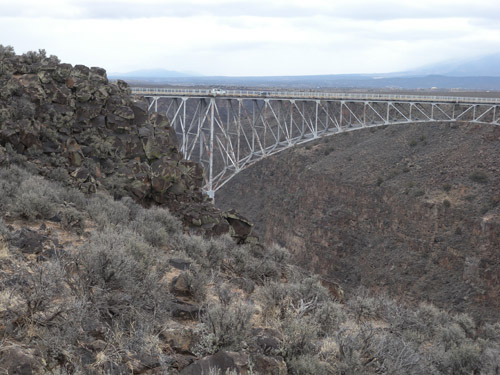 이들이 살아왔고, 앞으로도 쭉 살아갈 것 같은 그들만의 주거지를 간신히 돌아본 다음, 우리는 타오 외곽으로 리오 그란데의 강줄기를 찾아 차를 돌렸다. 30분 정도 황야를 달렸을까. 엄청난 규모와 높이의 다리 ‘리오 그란데 죠지 대교[Rio Grande George Bridge]’를 만났다. 저려오는 오금을 달래며 다리 한복판까지 걸어갔다. 비행기 창문으로 땅바닥을 내려다보듯 갑자기 고소공포증이 밀려들었다. 멀리 광활한 대지를 바라보고 나서야 이 다리가 없던 시절엔 타오가 강과 산으로 둘러싸인 고립지였음을 깨닫게 되었다. 그렇다면 그들은 왜 이런 고립지에 주거지를 건설하고 살았을까. 아마도 외부와 단절된 곳에 주거지를 건설하는 것이 자신들의 정체성을 지킬 수 있는 유일한 방법이라고 보았기 때문이리라. 지역들이 사통팔달로 이어지는 오늘날 그들이 외부인들과의 접촉을 꺼려하는 것도 그런 전통적인 삶의 방식에서 나온 본능적 반응일 것이다.