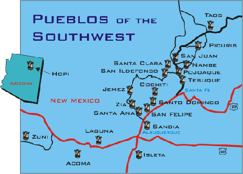 뉴멕시코의 푸에블로 부족 분포도