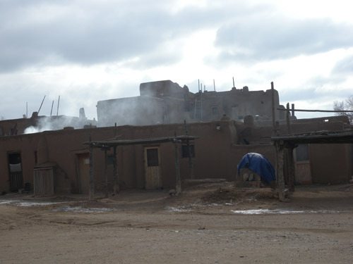빵을 굽고 있는 듯 연기가 피어오르는 타오 푸에블로