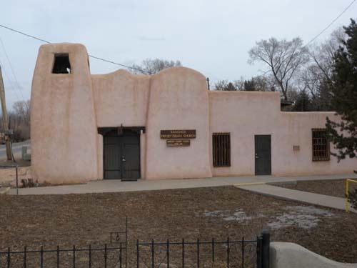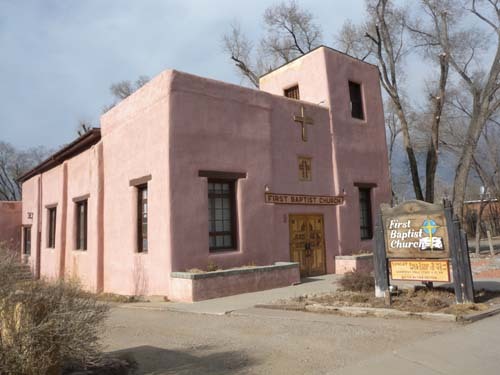 멀리 타오 마운틴이 서 있고, 그 앞으로 시가지가 비교적 널찍이 자리 잡고 있었다. 길은 좁았으나, 도시를 채우고 있는 어도비 양식의 집들은 따스해 보였다. 무엇보다 성당과 교회 및 공공건물들 대부분이 어도비 양식인 점이 좋았다. 번쩍이는 빌딩 식 교회들보다는 어도비의 그 따스함 속에 구원의 손길이 깃들 것만 같았다. 우리의 최종 목적지인 ‘타오 푸에블로(Taos Pueblo)’까지는 타오 신도시[Modern City of Taos]에서 북쪽으로 1마일이나 더 가야 하는데, 도시에 들어가자마자 어도비 양식으로 지어진 ‘아씨시의 성 프란체스코 성당[St. Francisco de Asísi Church]’이 매혹적인 자태로 서 있는 것 아닌가. 안 들를 수 없는 일. 앞쪽으로 가보니 말문이 막히도록 아름다운 건축미가 돋보였다. 이 지역의 교회들을 들르면서 느끼는 것은 종교적인 경건함보다는 건축미가 먼저 마음을 흔든다는 점이다. 교회 문을 살짝 밀고 들어서니 누가 죽었는지 장례미사가 집전되고 있었다. 경건하고 슬픈 분위기를 해칠까 저어되어 살그머니 되돌아 나왔으나, 아름다운 교회의 모습은 자꾸만 우리의 발걸음을 지척이게 하였다. 거기서 몇 블록을 전진하자 이번에는 어도비 양식의 장로교회와 침례교회 등이 참한 모습으로 서 있었다. 비록 문은 잠겨 있었으나, 외양을 감싼 고즈넉한 분위기가 세상의 번잡함을 정화시키고 있는 듯 했다. 역시 그곳의 자연환경과 일치되는 분위기의 교회가 사람들에게 구원의 희망을 쉽게 줄 수도 있겠다는 생각이 들었다. 교회 전체에서 풍겨나는 따스한 느낌 때문인가 이 지역의 교회를 볼 때마다 그대로 문을 열고 들어가 폭 안기고 싶은 마음이 드는 것이었다. 생소한 모습으로 번쩍이는 교회로부터 구원의 희망을 찾기란 어려운 일임을 비로소 깨닫게 되었다.