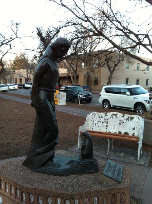 산타페 시청 앞에 서 있는 프란치스코 성인 상