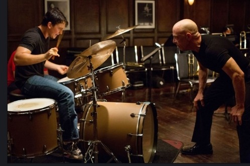 아내의 손에 이끌려 나간 극장 한 구석. 수영을 마친 후의 노곤함을 어둠 속의 단잠으로나 풀어볼까 하고 푹신한 의자에 몸 전체를 맡긴 채 두 다리를 뻗었다. 그 순간, 귀를 찢는 드럼 소리. 그리고 반들거리는 머리통과 형형한 눈빛의 늙은 터프가이. 고약하게도 고것들이 내 잠의 싹을 싹둑 잘라 버렸다. 첫 장면에서 나는 드럼을 사이에 둔 두 미치광이, 음악교수 플렛처(Fletcher)[J.K.Simmons 분]와 그의 제자 앤드류(Andrew)[Miles Teller 분]를 만난 것이다. 닫으려는 눈과 마음을 사정없이 두드려대는 두 시간 동안 잔인한 긴장과 전율 속에 떨어야 했다.