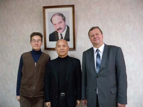 벨라루스 국립대학에서 유리 김, 샤두르스키 학장과 함께