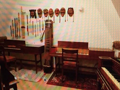 한국의 전통악기들과 탈들이 진열된 키이스 교수 자택 거실 모습