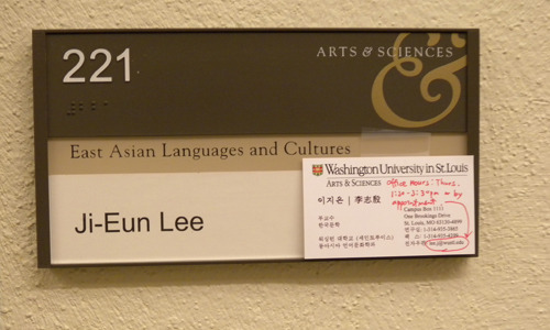 학회 덕에 이 대학에서 종신 교수직을 받고 한국문학을 강의하고 있는 이지은 교수를 만날 수 있었다. 연세대학교에서 노문학을 전공하고 하바드에서 박사학위를 받은 이 교수는 이 대학교 인문대학(Arts & Sciences) 동아시아 언어문화학부(East Asian Languages and Cultures) 한국학과의 학과장이었다. 이 교수는 저서 <