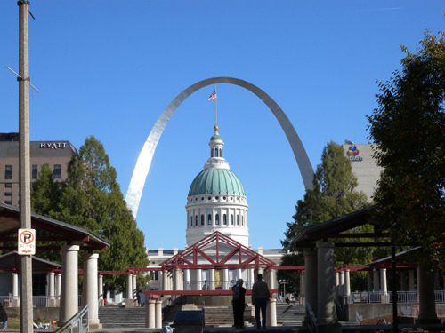 박물관을 나와 들른 곳은 이 도시의 어느 곳에서도 보이는 게이트웨이 아치(Gateway Arch). 국립 제퍼슨 국토 확장 기념관(Jefferson National Expansion Memorial)을 장식하는 조형물이자 ‘게이트웨이 시티(Gateway City)’라는 세인트루이스의 별칭을 시각적으로 보여주는 랜드마크였다. 서부개척 시대, 서부로 넘어가는 관문이 바로 세인트루이스였고, 그 개척의 상징물이 바로 이것이었다. 1947년 핀란드 계 미국 건축가 에로 사리넨(Eero Saarinen)과 건축기사 한스카를 반델(Hannskarl Bandel)의 설계를 채택, 1963년 2월 12일 착공, 1965년 10월 28일 완공, 1967년 7월 24일 일반에 개방되었으니, 설계로부터 무려 20년이나 걸린 큰 공사였다. 전체 높이 192m의 무지개 형상 스테인리스강 구조물로서 남쪽과 북쪽 두 방향에서 엘리베이터 격인 트램(tram)을 타고 아치 꼭대기까지 올라가게 되어 있었다. 꼭대기의 좁고 긴 방에서 창문을 통해 미시시피강과 일리노이 평원, 세인트루이스 시내를 조망할 수 있도록 만들었고, 아치 밑으로는 웨스트워드 익스팬션 박물관(Museum of Westward Expansion)이 연결되었다.