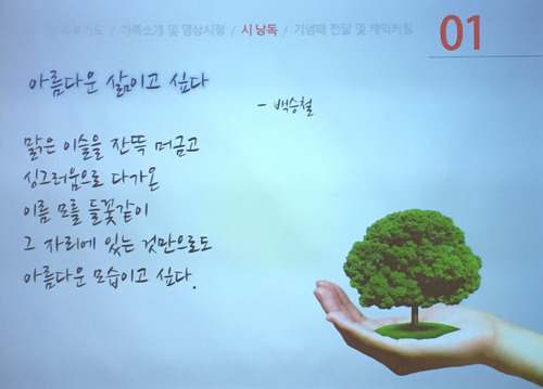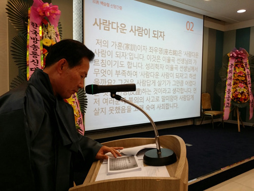 발표와 낭송을 하고 있는 백 시인