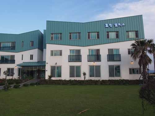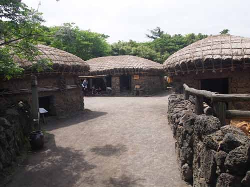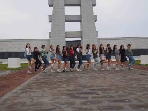 해녀박물관 밖에서 포즈를 취한 아름다운 여학생들